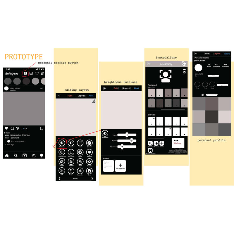 Instagram user layout edit and preview functionality. UX and application design.